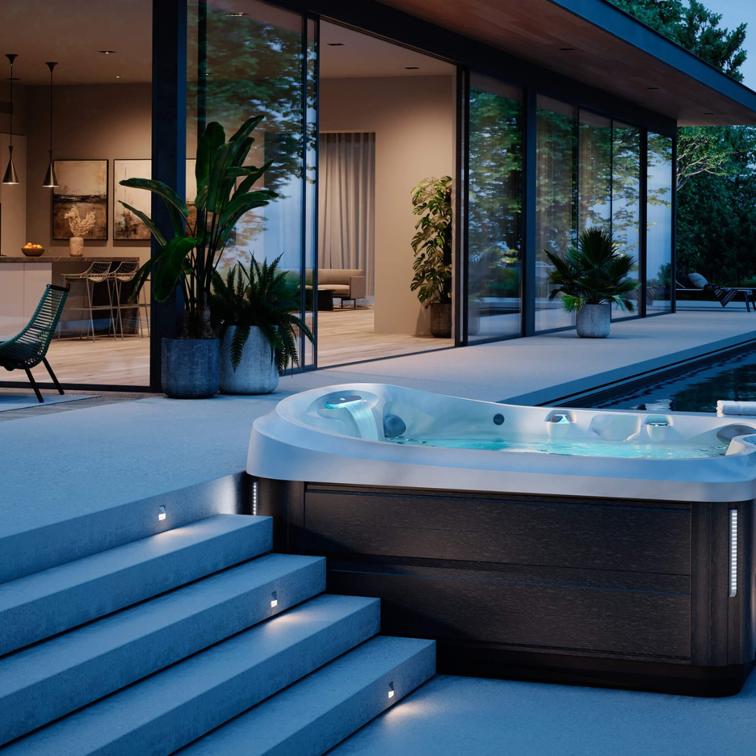 The SmartTub™ system allows you to control your Jacuzzi® hot tub remotely using a smartphone app. You can adjust temperature, monitor energy usage, and receive maintenance notifications, ensuring a hassle-free spa experience anytime, anywhere.